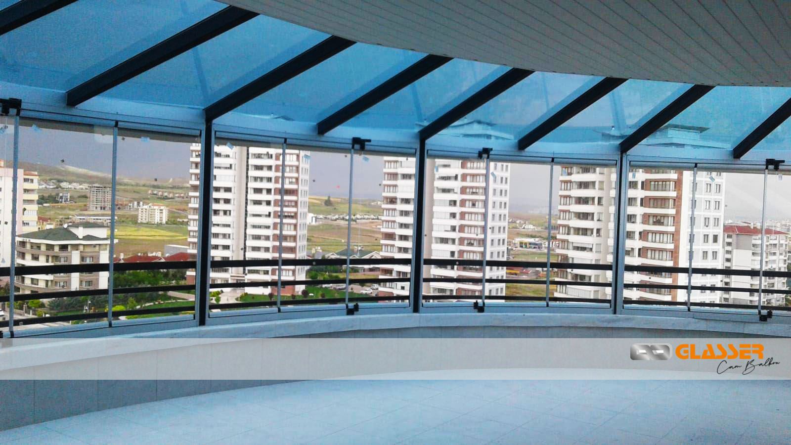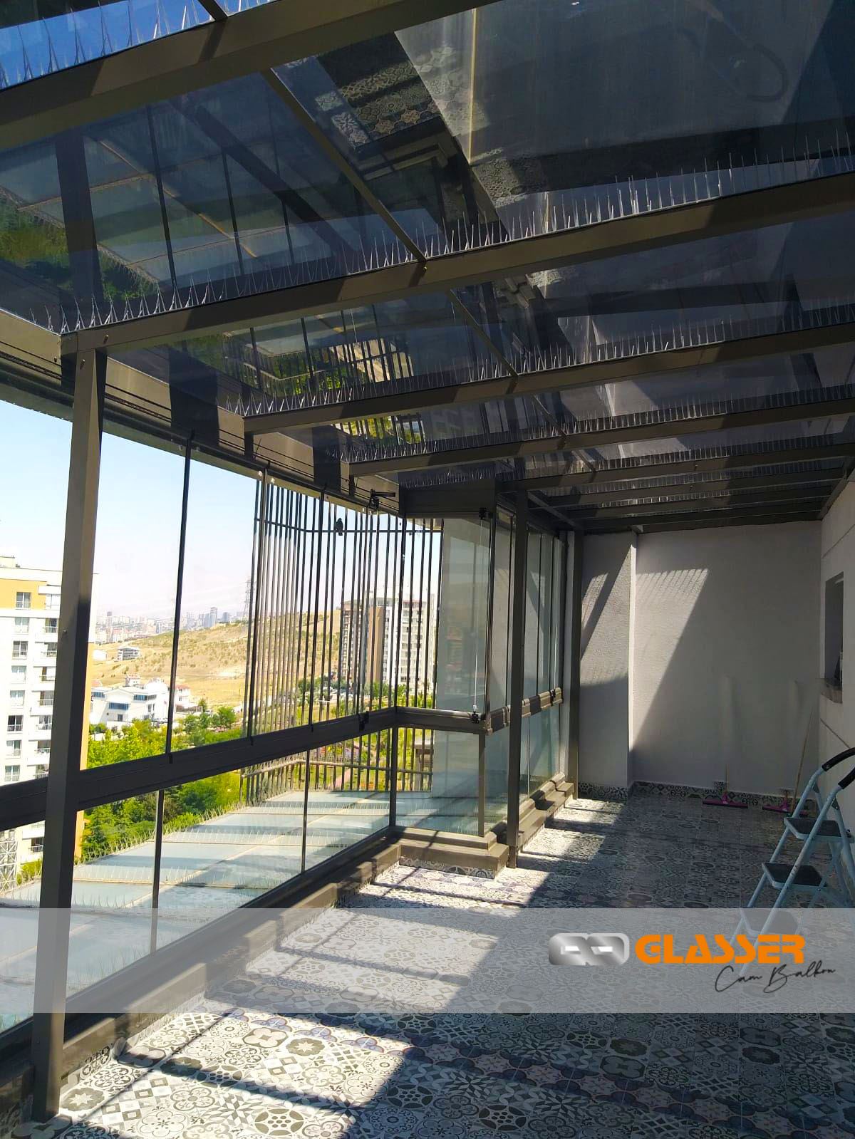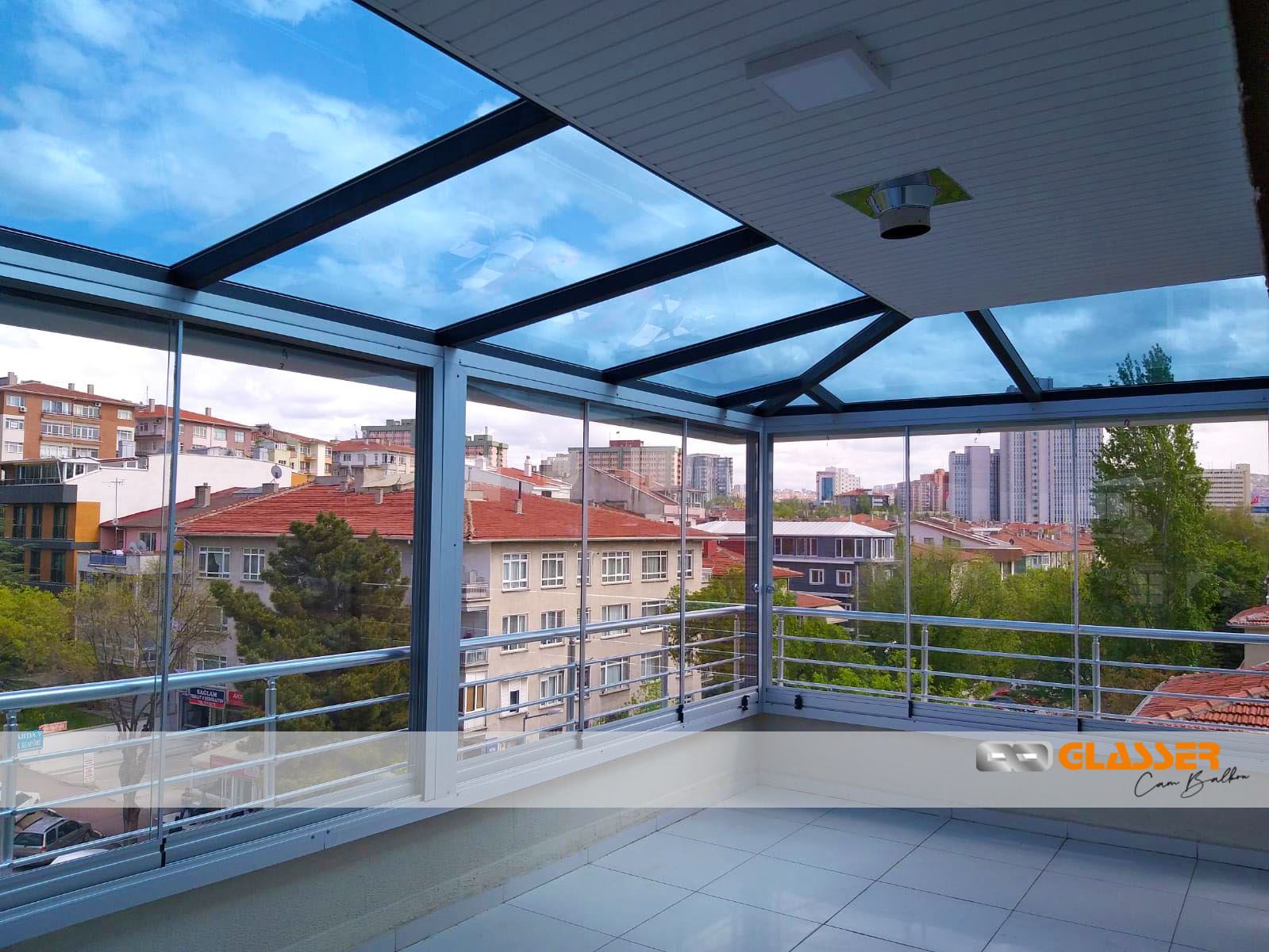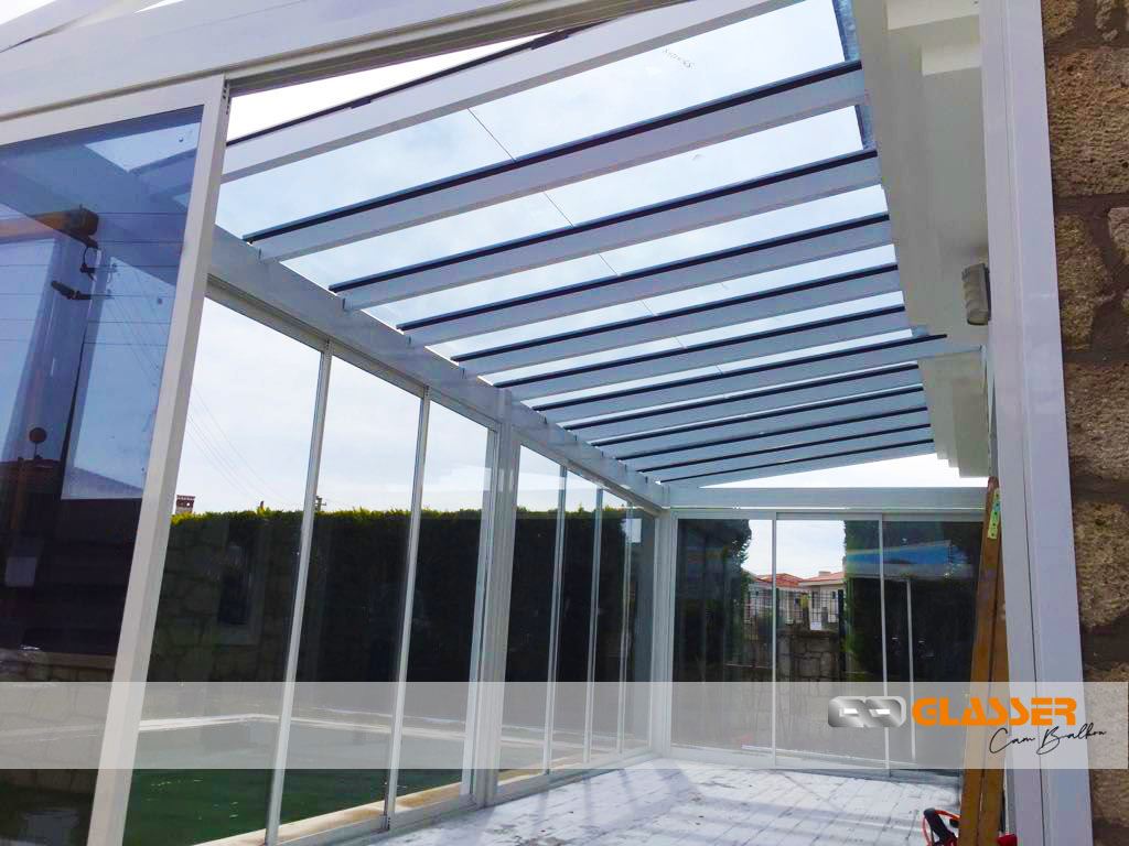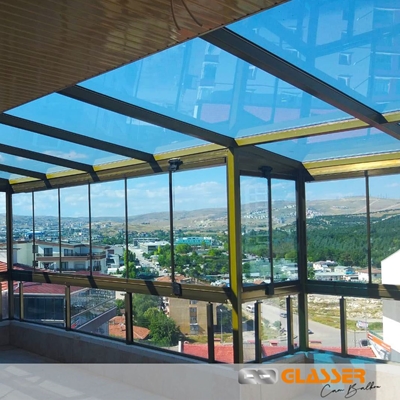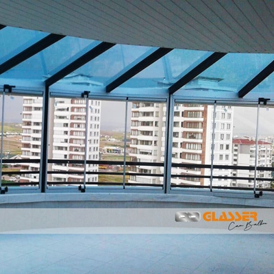 أنظمة تغطية الشرفات الزجاجية هي تطبيقنا الذي تم إنشاؤه باستخدام المظلات الشمسية وأنواع الزجاج الملونة بمعدل معين، والتي يتم تطبيقها في الأماكن التي تتطلب ضوء الشمس والطاقة. يعتبر النظام مناسب للزجاج المنزلق أو الشرفة الزجاجية أو الألومنيوم أو تطبيقات بي في سي حول الشرفة. النظام مصنوع من الفولاذ ومقاوم للثلج والرياح. يتم عمل أخدود الصرف حول النظام وتوصيل أنابيب تصريف المطر