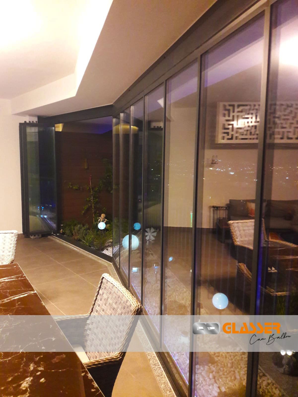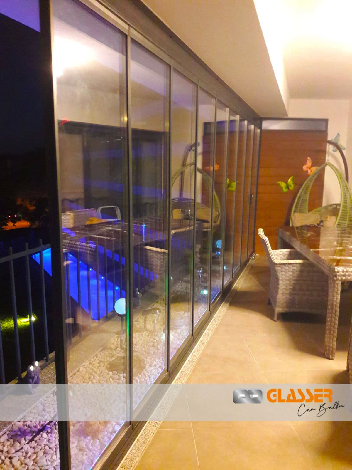 - نظام الأخدود في مقاطع السكك المستخدمة في الأسفل والأعلى يوفر أقصى عزل للمطر من خلال العمل كقناة تفريغ للرطوبة في الأسفل وهامش في الجزء العلوي الخارجي. لا يتسرب الماء إلى الشرفة عن طريق التخلص من القطرات المتكونة على الشرفة الزجاجية بسبب الظروف الجوية من داخل السكة مع الصرف المموج على السكة السفلية.